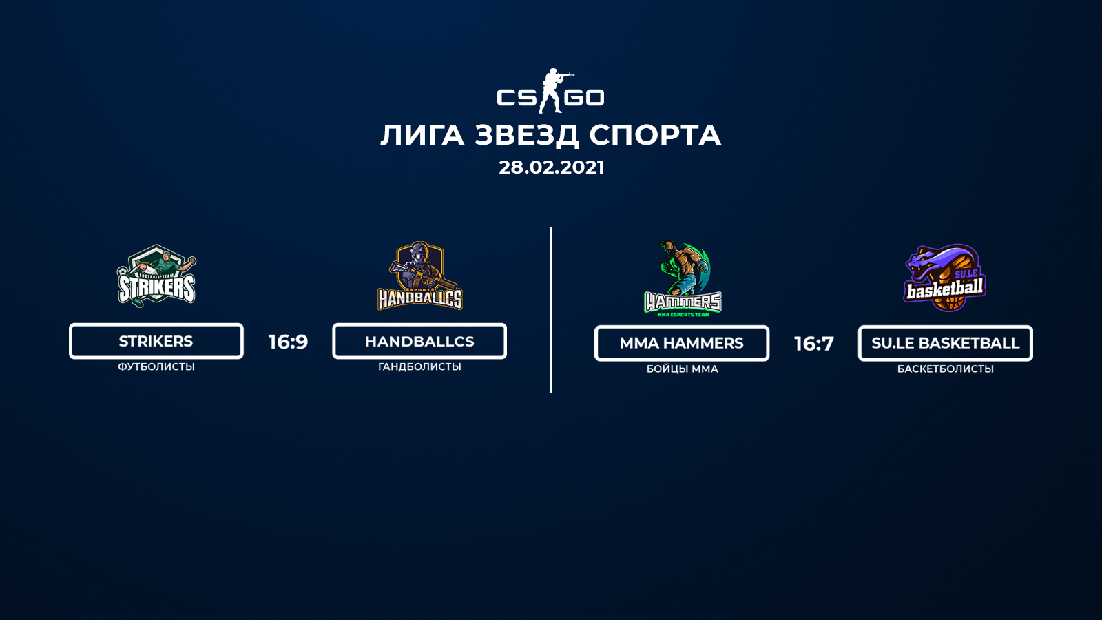 Второй день игрового уикенда начался со встречи футболистов Strikers и гандболистов HandballCS. Футбольная сборная добилась уверенной победы со счетом 16:9. Это вывело Strikers на второе место турнирной таблицы “Лиги звезд спорта”. Капитан футболистов Артемий Неведомский был рад победе и в послематчевом интервью заявил, что у него игра шла прекрасно: “Хочется выразить респект команде соперников, это была моя третья игра в Лиге, и она оказалась самой интересной”.