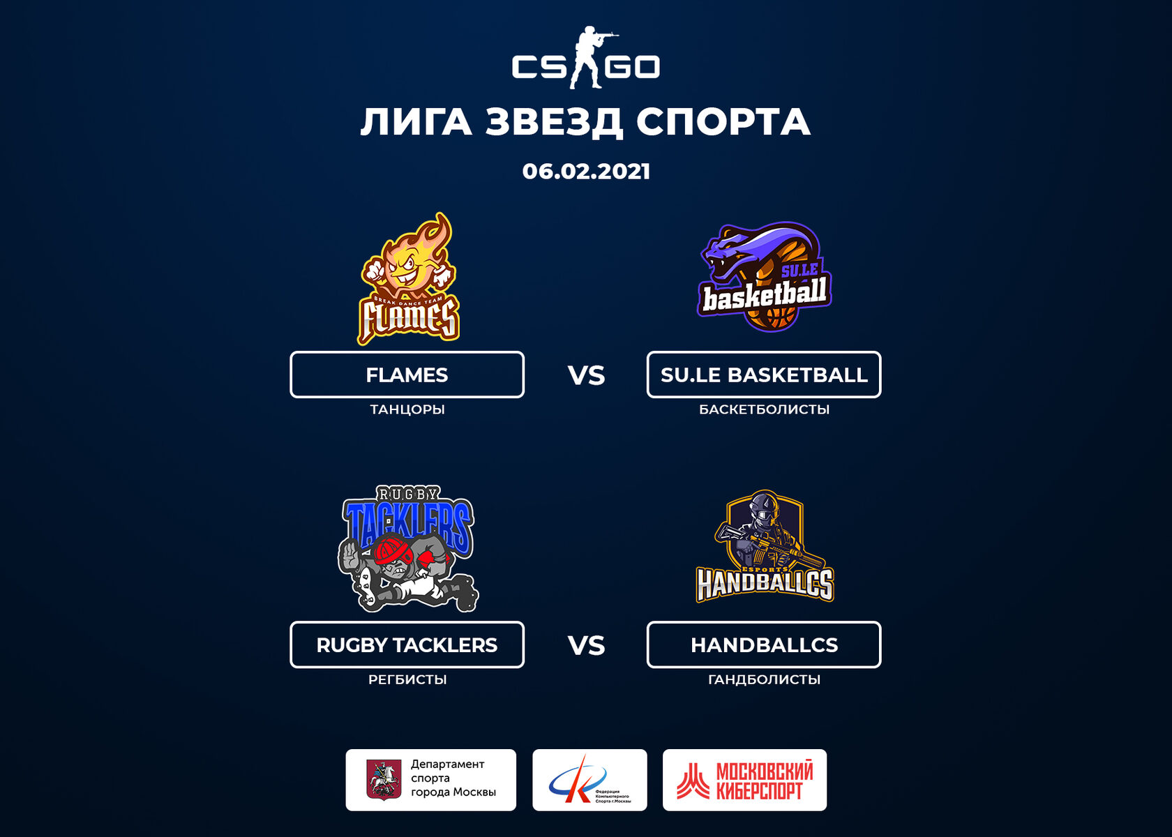 «Лига звезд спорта» по Counter-Strike: Global Offensive проводится в рамках проекта «Московский киберспорт» и при поддержке Департамента спорта города Москвы.